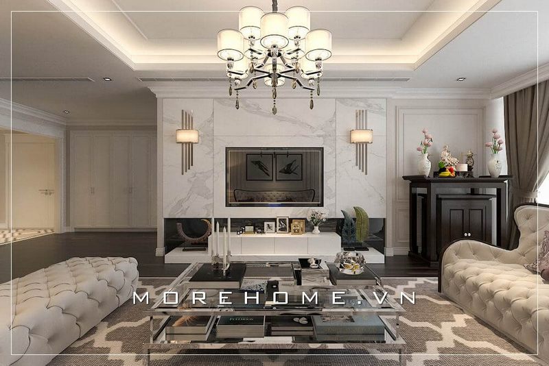 Ngoài ra, việc sử dụng các phụ kiện trang trí như đèn chùm cổ điển, tranh ảnh vintage hay thảm trải sàn họa tiết hoa lá cũng góp phần tạo nên sự hài hòa cho phòng khách. Hãy thử đặt một chiếc gương lớn với khung gỗ chạm trổ trên tường để tạo điểm nhấn và mở rộng không gian. Đừng quên thêm những chậu cây xanh để mang lại sức sống và không khí trong lành cho căn phòng. Khi kết hợp tất cả những yếu tố này, bạn sẽ có một phòng khách không chỉ đẹp mắt mà còn đầy ấm áp, lý tưởng cho những buổi sum họp bên gia đình và bạn bè.